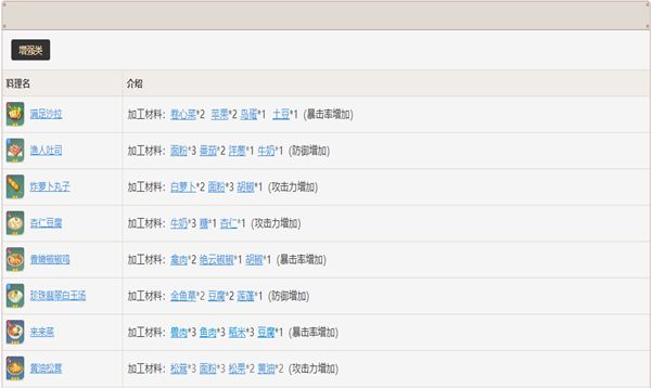 食材的种类分为:恢复类、增强类和复活类这三大种类,其中还有具体的细分,下面我们就来具体讲述一下食材的种类和加工的方法。