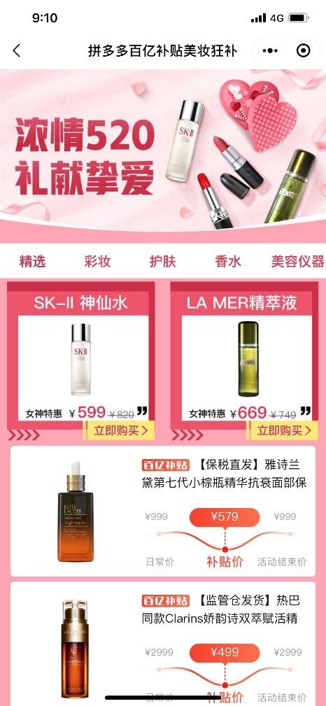 拼多多520开启"百亿补贴"大促 美妆补贴最高