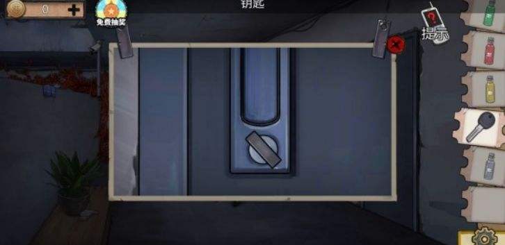 用吸盘获取架子上玩偶胸口处的红色零件,去铁门开锁。