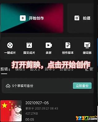2.打升剪映,点击开始创作