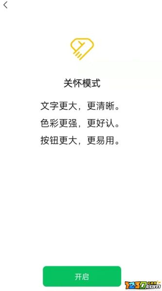 4.进入关怀模式后,点击“开启”就能开启关怀模式了。想要关闭也点击关闭。