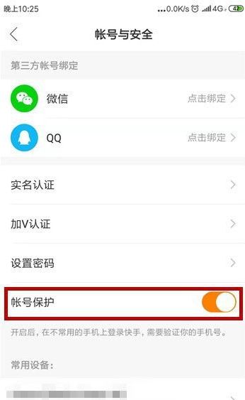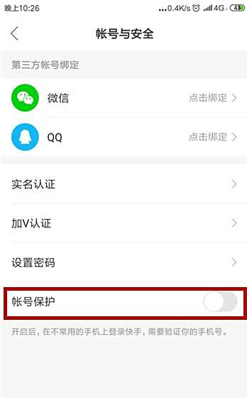 4.接下来可看到【账号保护】,然后点击后方的开关关闭。