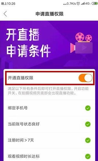 7.在快手实验室中即可看到【开通直播】,点击打开该功能 。
