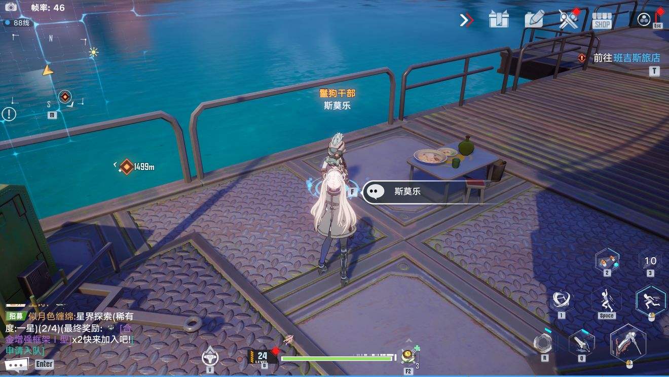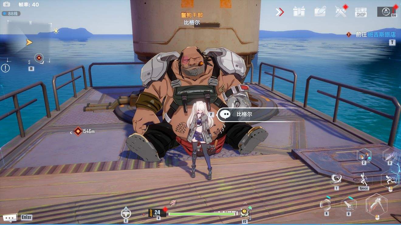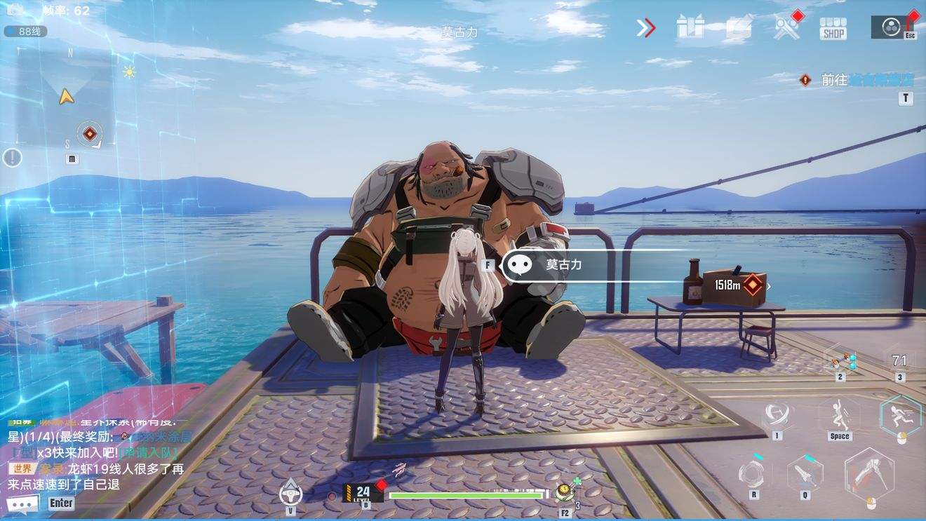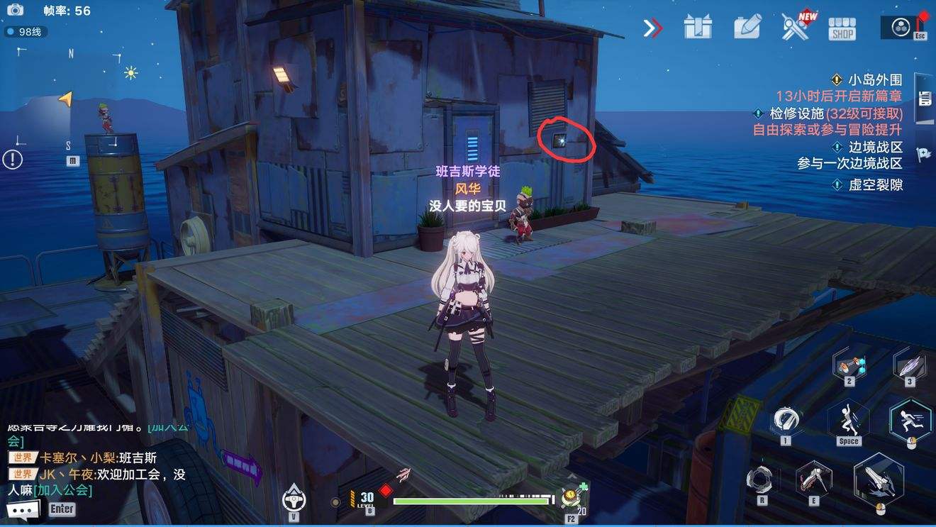 14、给看守宝箱的吃滋滋烤肉即可开宝箱,在宝箱中获得有旅行者号-引擎,位置在海上基地最上方。