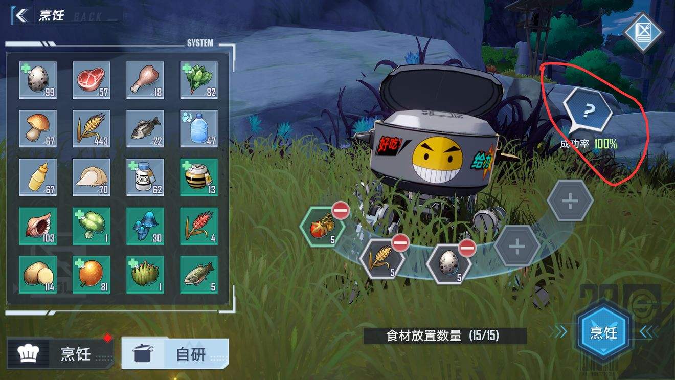 9、然后放入食材显示100%(在纳维亚采集草莓,在班吉斯找食材商人购买苏打水)