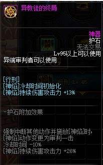 dnf100级异端护石推荐灭恶大天罚、神焰审判、异教徒的终局,护石第一槽位为行刑、第二槽位轮回裁决斩、第三槽位神焰斩。