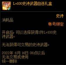 开启后,可以选择获得1件除武器以外的100级史诗装备。