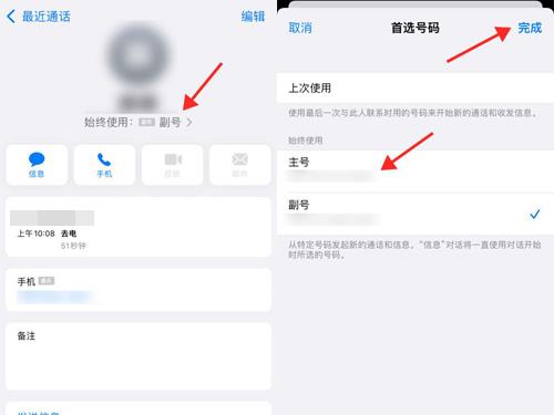 2、点击始终使用后方的箭头,选择主副卡后点击完成即可切换主副卡拨号。