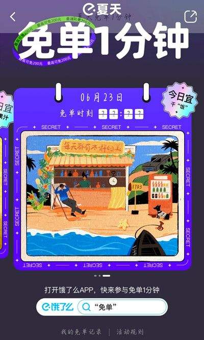 6月23日饿了么免单一分钟活动时间说明: