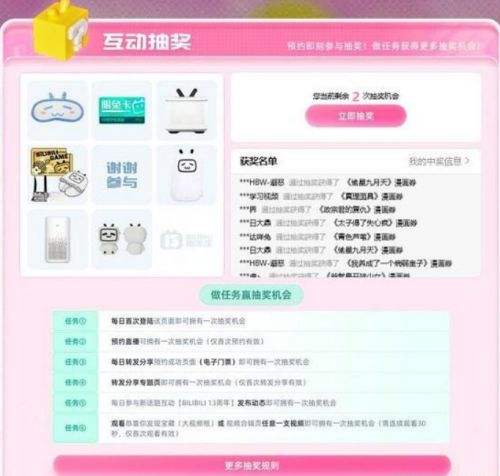 预约即可参与抽奖!做任务获得更多抽奖机会!