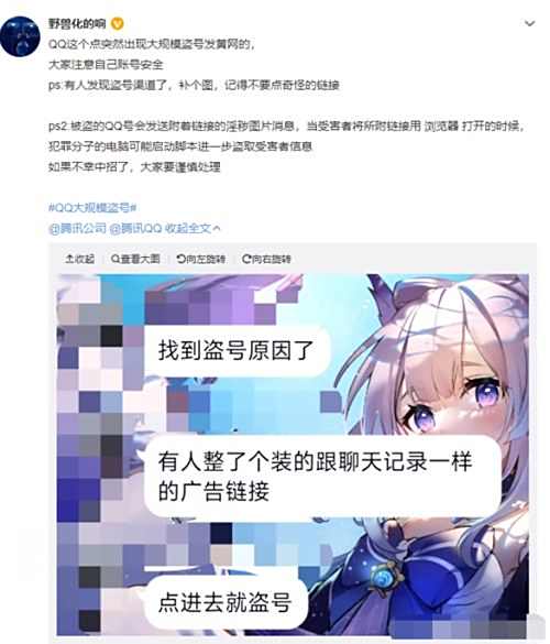 有博主判断,疑似有人制作了一个盗号链接,伪装成聊天记录,点进去就盗号。而且被盗的QQ号会发送附着链接的淫秽图片消息,当受害者将所附链接打开的时候,犯罪分子的电脑可能启动脚本进一步盜取受害者信息。
