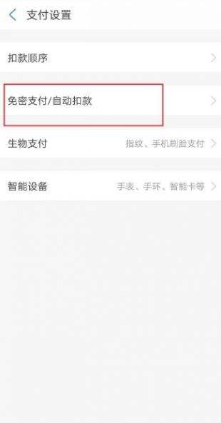 第四步进入支付设置后,点击免密支付/自动扣款。