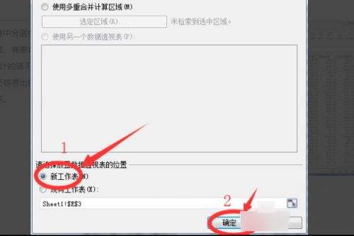 3.然后我们选择新工作表,在当前页面的创建数据透视表窗口下方点击确认。