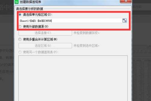 2.然后我们在当前页面弹出的创建数据透视表窗口中选择要分析的单元格区域。通常,默认情况下,它是工作表中填写数据的所有区域。