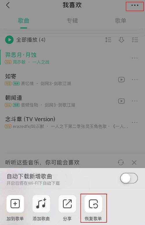 第五步:点击“恢复歌单”。
