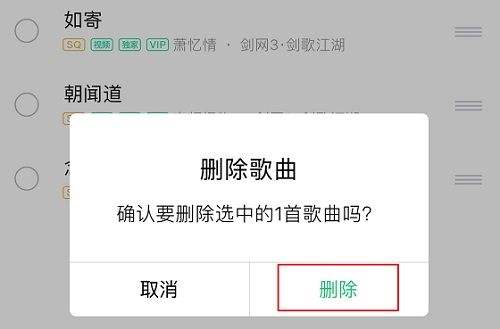 第三步:选择想要删除的歌曲,点击下面的“删除”。
