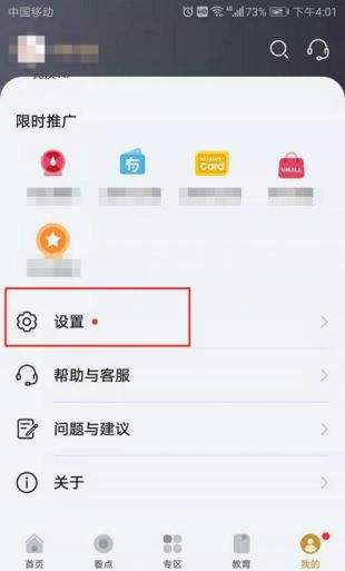 第三步:进入我的页面,点击设置的选项。