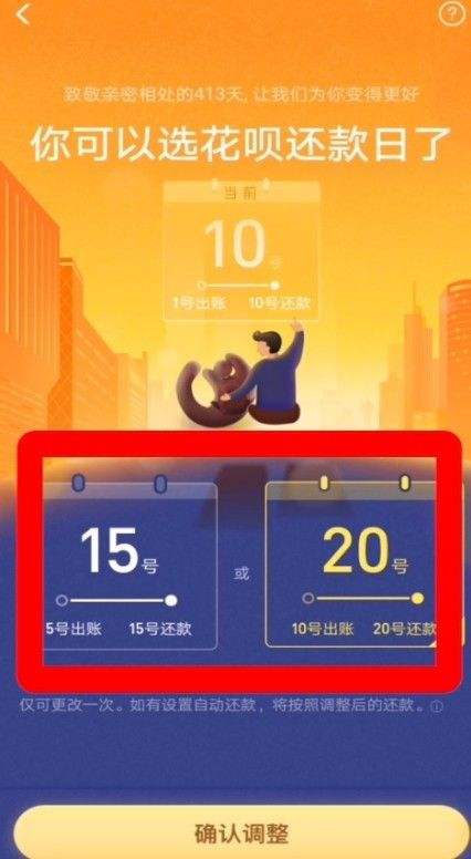 4.根据自己的需要选择“新的还款日”,然后点击“确认调整”。