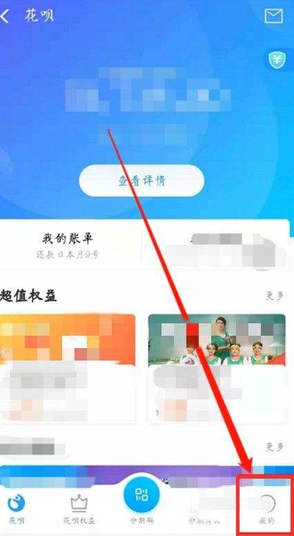 2.进入“花呗”点击页面后选择“我的”。