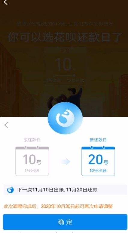 5.点击“确定”之后,成功调整了花呗的还款日期。