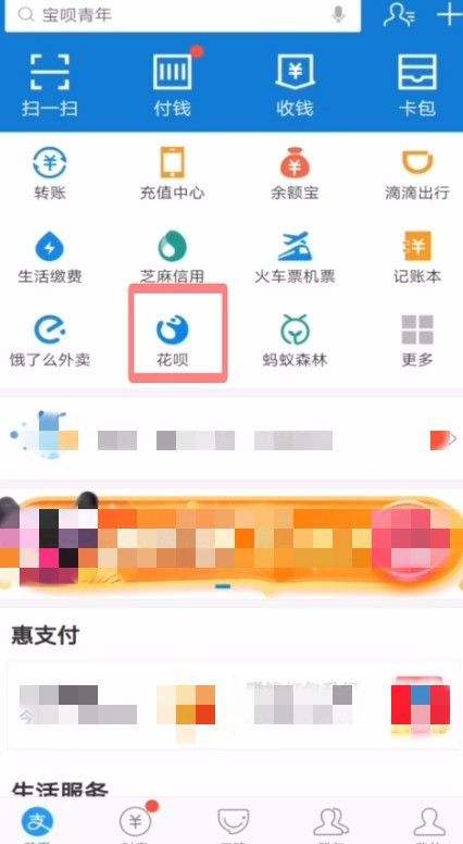1.打开支付宝APP,点击“花呗”按钮。