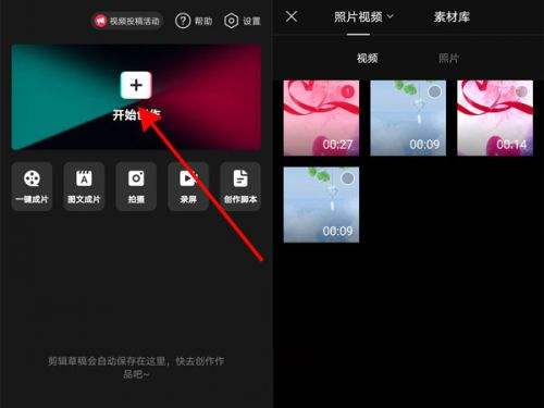 1、打开剪映app,点击开始创作,选择素材,点击添加。