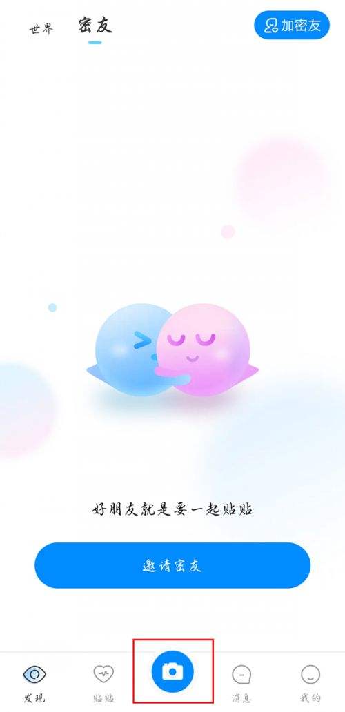 1、首先选择贴贴,点击底部中间的拍照图标。