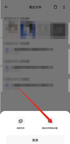 4.点击最近的文件隐私设置。
