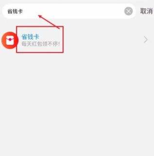 5.输入省钱卡进行搜索,在搜索结果中快速找到省钱卡功能。