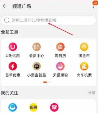 4.在频道广场找到搜索框。