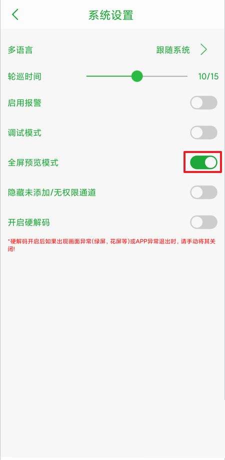 3.点击系统设置界面全屏预览模式右侧的关闭开关。