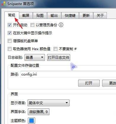 1.打开Snipaste首选,切换到常规,勾选启动。