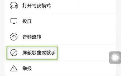 3.点击这个项目可以选择屏蔽歌曲或歌的歌手,直接点击下图中相应的选项即可;