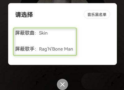 2.然后在应用程序的底部弹出一个窗口,其中一个窗口“屏蔽歌曲或歌手”,如下图所示
