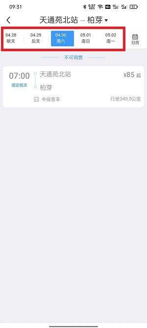 5、选择后点击【查询汽车票】查看可购票的日期,选择需要购票的班次支付即可。