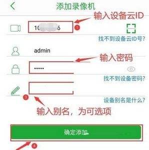3.最后,输入事先准备好的云ID.输入密码.填写别名等,然后点击“确定添加”可以添加设备的按钮。