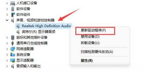 3、也有可能是没有安装声卡或音响设备的驱动,在“设备管理器”中可以更新驱动。
