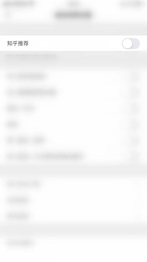 4、推送通知设置界面点击“知乎推荐”后面的圆点;