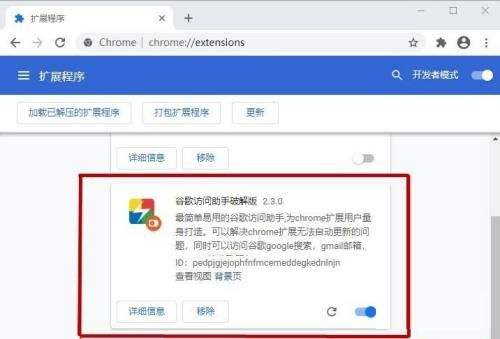 4、最后回到扩展程序,可以看到谷歌浏览器已经添加好谷歌访问助手。