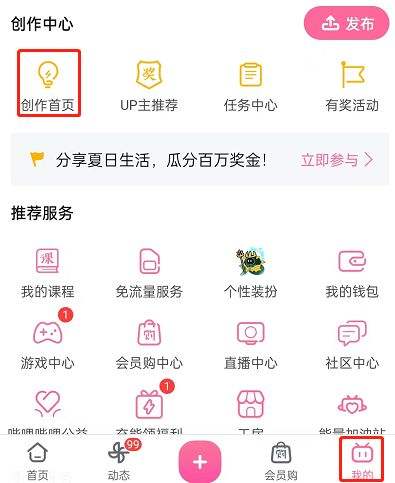 1.打开哔哩,点击我的,点击创作主页。