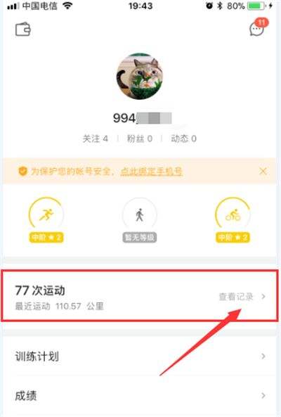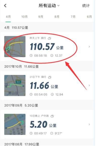 2.点击查看所有运动记录,点击任何运动记录进入。