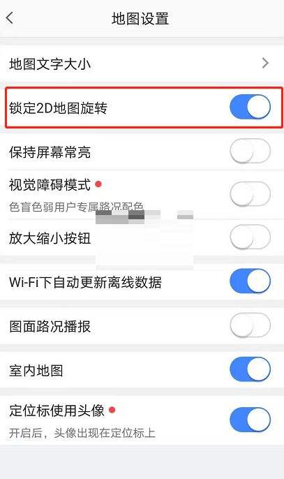 3.找到锁定2D地图旋转】,可以打开右边的按钮。