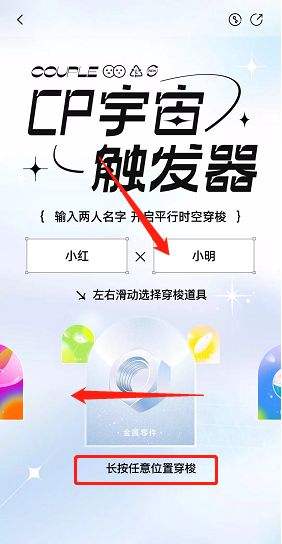 2.输入你喜欢的东西cp然后点击你喜欢的道具,长按任何位置穿梭。