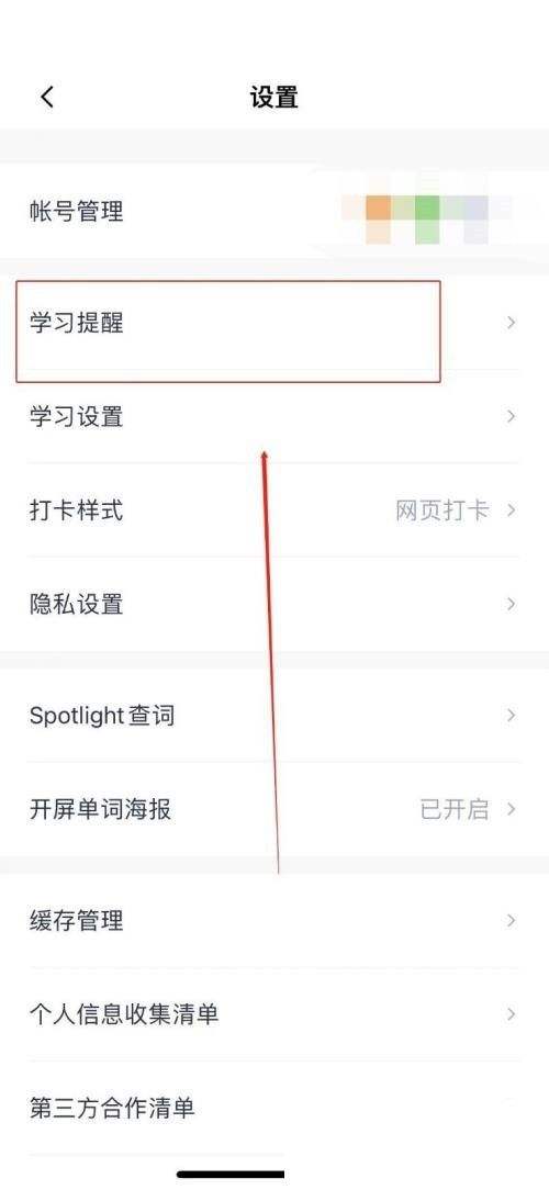 3.然后进入设置页面,点击页面“学习提醒”;