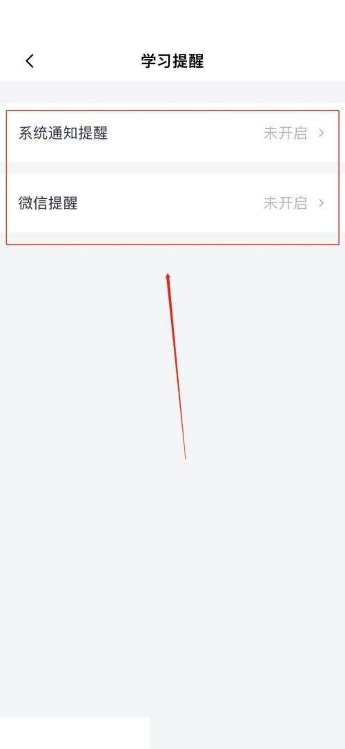 4.最后进入学习提醒后,打开“系统通知提醒”或者“微信提醒”。