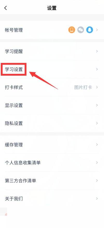 3.进入新页面后,点击栏目中的学习设置此选项;