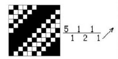 1、首先我们根据题目中的条纹能够的看出它采用的是复合斜纹,复合斜纹一般是简单斜纹和加强斜纹结合的方式制作的。