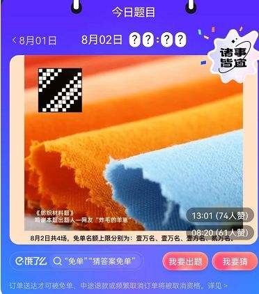饿了么免单一分钟8月2日答案是什么?今天是饿了么8月2日最新的免单一分钟活动,本场一共有4次免单时刻,很多网友都还猜不出饿了么8.2免单时间是什么时候?下面就让GG趣下小编带你一起深入了解一下吧。