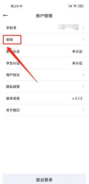 进入账户管理界面,点击【密码】。