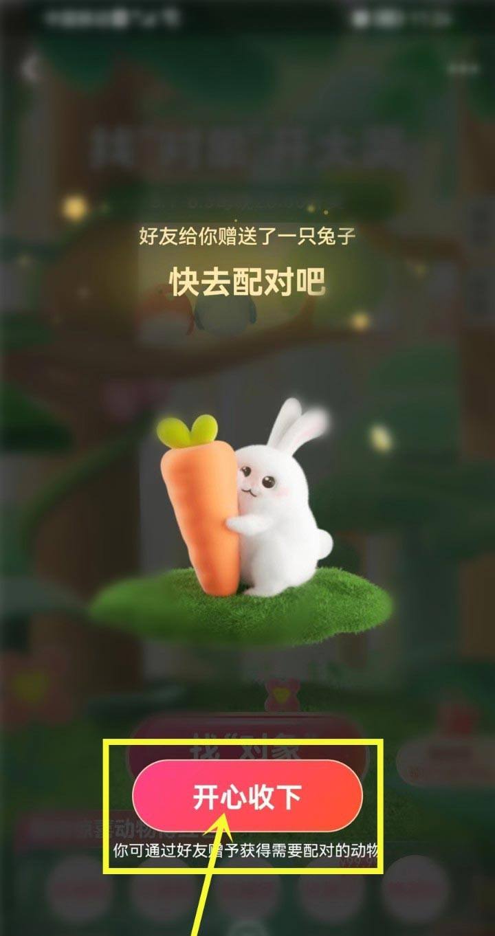 4.进入七夕寻找对象的活动页面,在弹出窗口中找到“开心收下”即可。